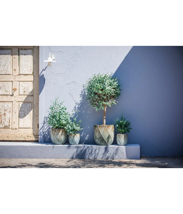 Sie wollen Ihre Blumen in einem schönen Topf besonders hervorheben? Mit dem Keramik-Topf Rombus aus dem Hause Dehner ist das ganz leicht! Das moderne Wohnaccessoire ist ein handgefertigtes Unikat, das mit einer wunderschönen Glasur und einem attraktiven Rautenmuster besticht. Als schickes Einzelstück fügt es sich in jeden Dekostil ein und setzt dennoch an der richtigen Stelle den Blickfang, den Sie sich für Ihr Gewächs wünschen. Bepflanzen Sie ihn zum Beispiel mit einer Orchidee, Glücksfeder, Kentiapalme oder einer Mondblume und freuen Sie sich auf den schmückenden Anblick aus hübschem Topf und Ihrer Lieblingspflanze.