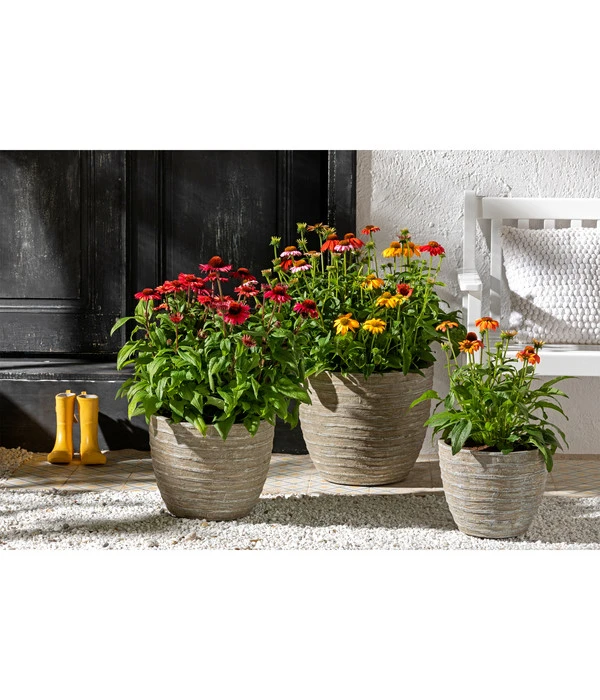 Geben Sie Ihren Pflanzen eine ganz individuelle Note und verschönern Sie Ihr Heim mit dem exklusiven Dehner Leichtbeton-Topf Prunus. Sie werden sehen, welch großen Unterschied der richtige Pflanztopf für Ihr Grün im Garten oder auf der Terrasse macht. Durch sein einfaches und schlichtes Design mit dezenter Rillenstrukur bringt der Dehner Leichtbeton-Topf die Schönheit Ihrer Pflanzen noch mehr zur Geltung und harmoniert mit den verschiedensten Wohnstilen. Der formschöne Topf sorgt dafür, dass sich Ihre geliebten Pflanzen noch wohler fühlen und besser gedeihen, zudem verleiht die zeitlose Farbgebung Ihrer Umgebung das gewisse Etwas und sorgt für ein ganz besonderes Flair.