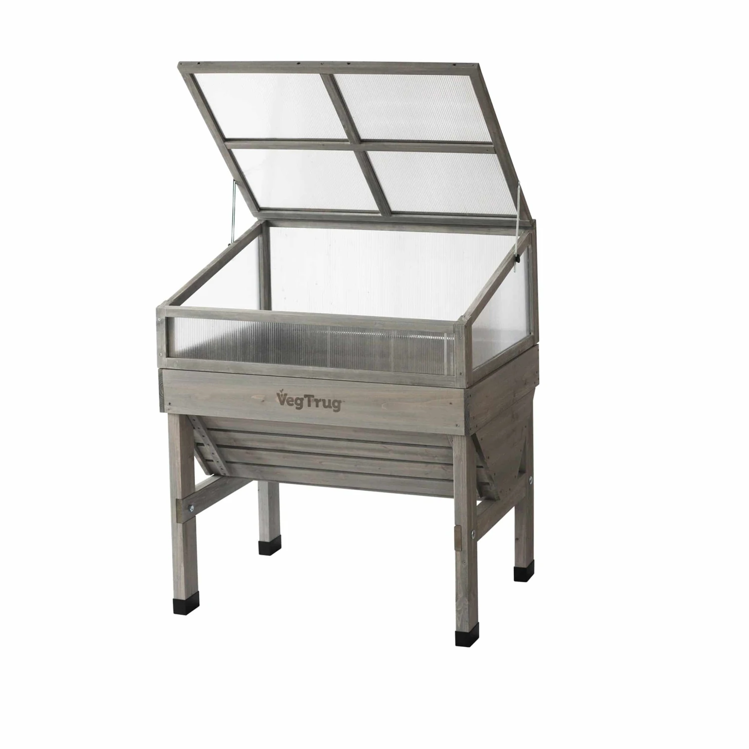 Der Frühbeetaufsatz von VEGTRUG ist praktisch zu verwenden. Er kann komplett geschlossen werden, wenn gelüftet werden soll wird der Aufsatz geklappt oder komplett geöffnet.