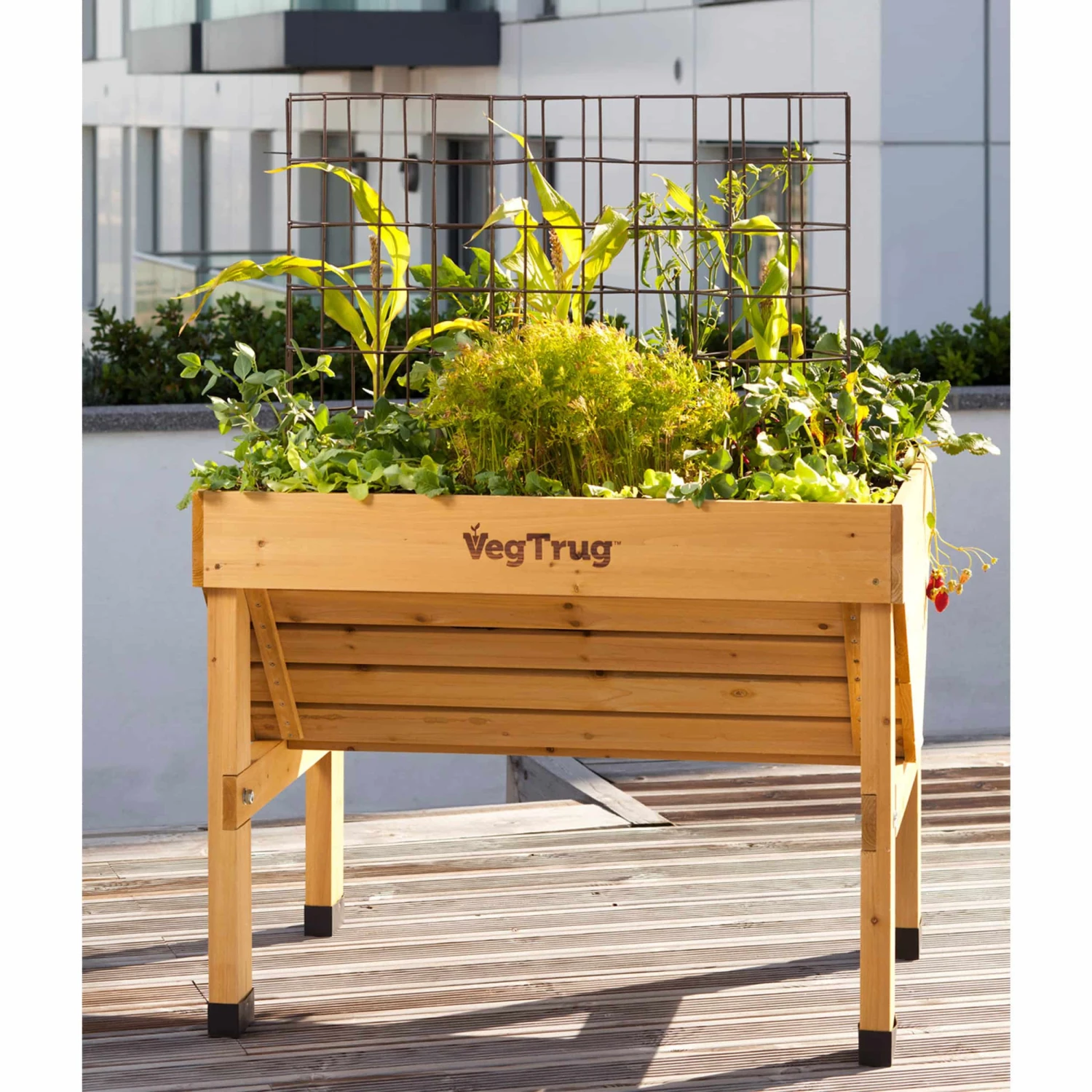 Die Produkte der britischen Marken VEGTRUG wurden aufgrund ihrer Einfachheit und Platzersparnis mit Innovationspreisen ausgezeichnet. Das stabile und robuste Hochbeet ist aus imprägniertem FSC-zertifiziertem Zedernholz gefertigt und lässt sich einfach selbst zusammenbauen. Die Schutzkappen aus Kunststoff verhindern das frühzeitige Abnutzen der Standbeine.