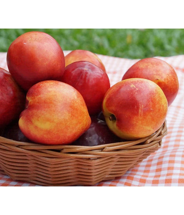 Süß und saftig sind Nektarinen wie Pfirsiche für viele der Inbegriff des Sommers! Doch Nektarinen haben gegenüber ihrer pelzigen Konkurrentin einen besonderen Vorteil: einen wunderbar glatten Teint. Und auch in puncto Aroma stehen sie Pfirsichen in nichts nach. Die Nektarine ‘Snow Queen‘ wird Sie sogar mit einem delikaten Wildpfirsich-Aroma überraschen. Und jetzt kommt das Beste: Sie können die Nektarine ‘Snow Queen‘ sogar im eigenen Garten anbauen! Und damit wird ein bisschen mediterranes Flair bei Ihnen einziehen, denn der Nektarinenbaum zeigt nach den zartrosa Blüten im Frühling sein typisches, glänzend grünes Laub, zwischen dem ab Juli die auf weißem Grund dunkelroten Früchte leuchten. Ab August beginnt dann bei Ihnen die Nektarinen-Zeit. Setzen Sie der Nektarine ‘Snow Queen‘ in Ihrem Garten – und machen Sie sich gleichzeitig auf die Suche nach neuen Nektarinen-Rezepten, denn diese Sorte ist bekannt dafür, dass Sie Ihnen zuverlässig besonders viele, saftige Früchte schenkt.