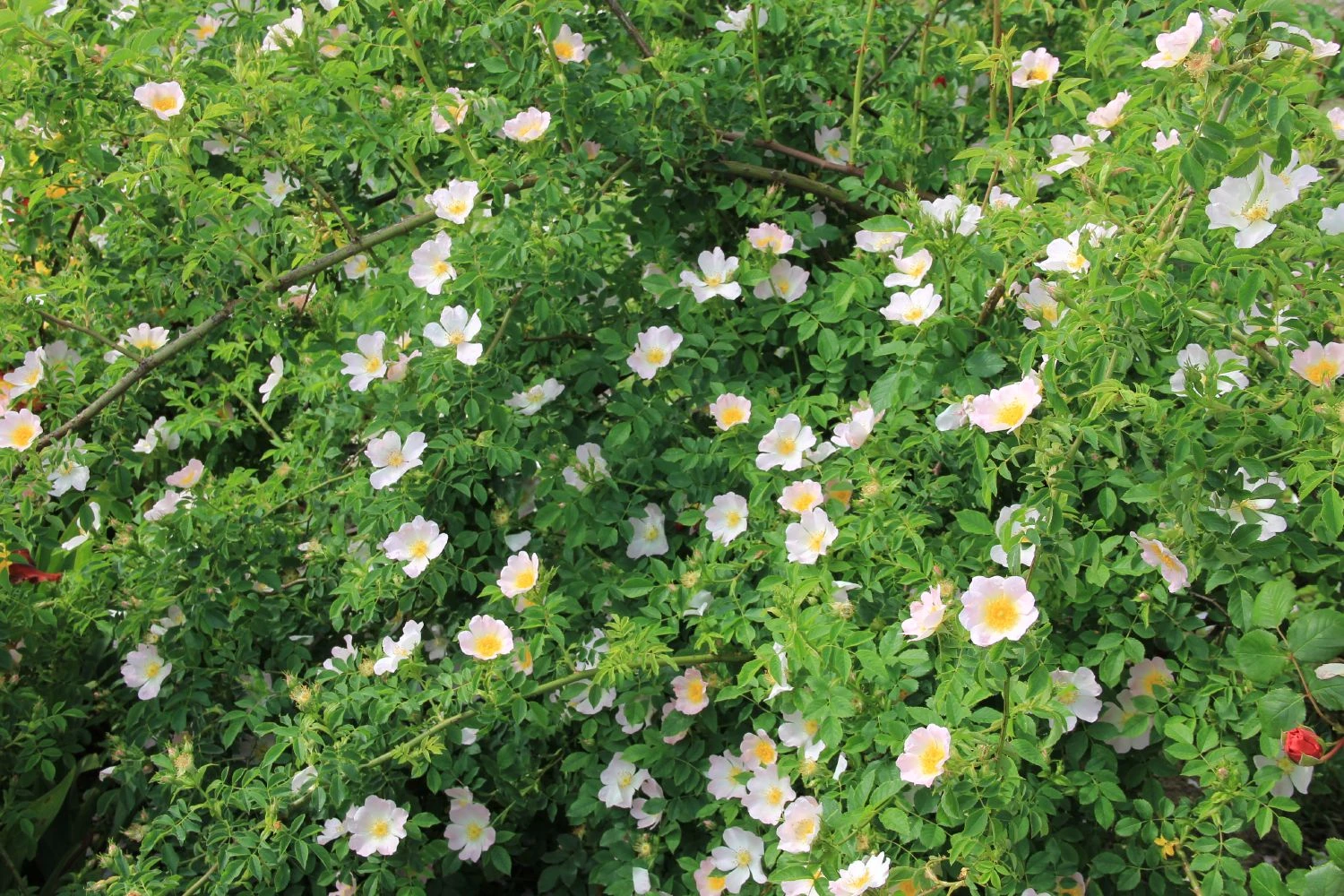 Die Hundsrose (Rosa canina) mit ihren einfachen, zartrosa Blütenschalen ist der Inbegriff einer Wildrose und lässt sich sowohl für Blühhecken als auch als Solitärgehölz im Garten einsetzen. Hier sollte man ihr jedoch genügend Raum geben, denn Rosa canina kann im Alter einen üppigen Strauch von bis zu 3 m Höhe und einem Durchmesser von 2 m erreichen.